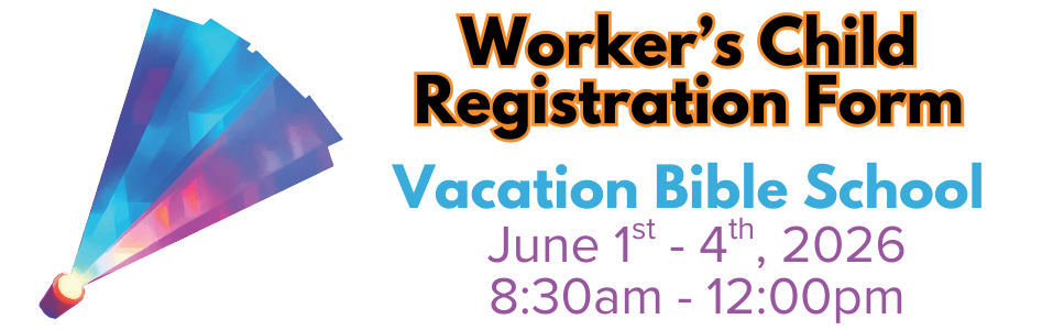 Online pre-registration will be open through May 29th. In-person registration will open Monday June 1st beginning at 8:00am. VBS begins at 8:30 am and goes until 12:00pm daily.