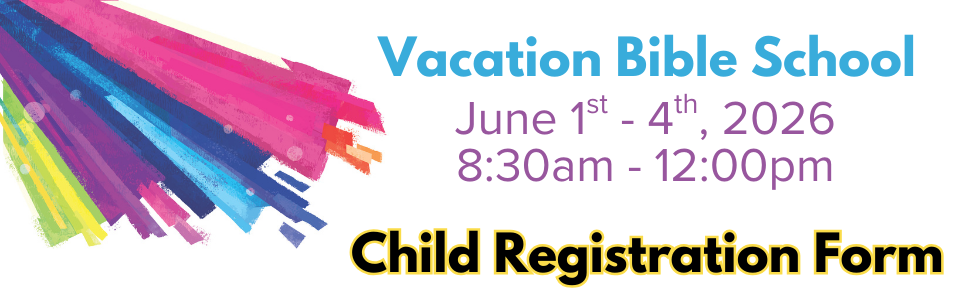 Online pre-registration will be open through May 29th. In-person registration will open Monday June 1st beginning at 8:00am. VBS begins at 8:30 am and goes until 12:00pm daily.
